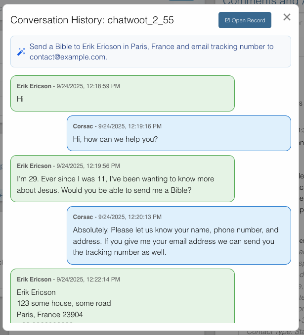 This is a beta project. We’re exploring Chatwoot as the solution we recommend for your online conversations. The integration is working and improving. We’re looking for ministry teams willing to try it and give feedback.
