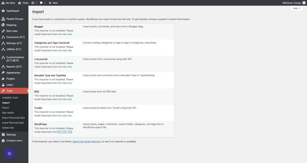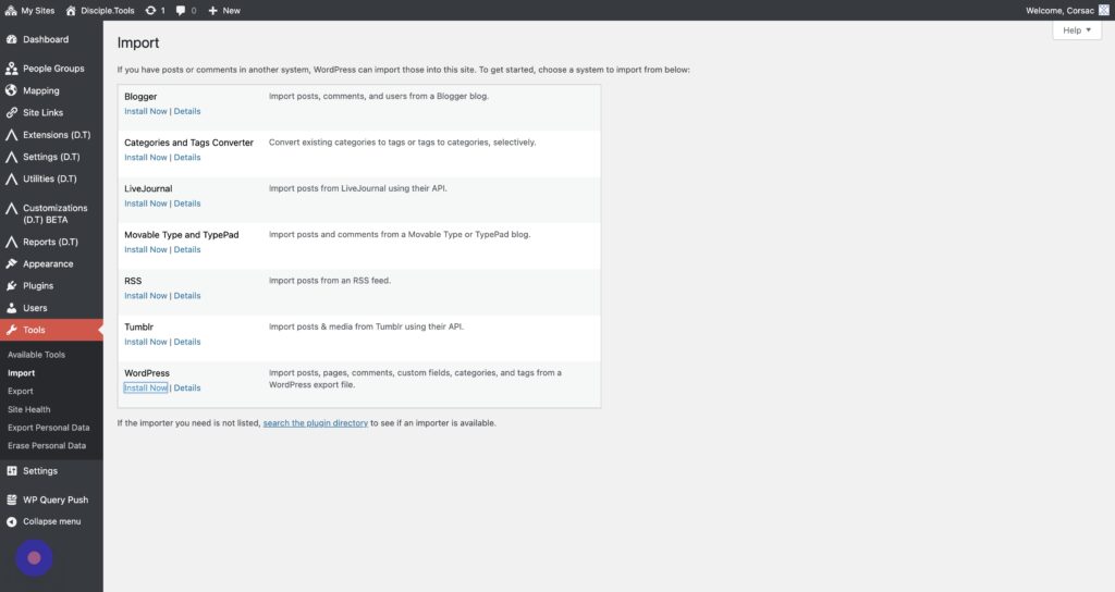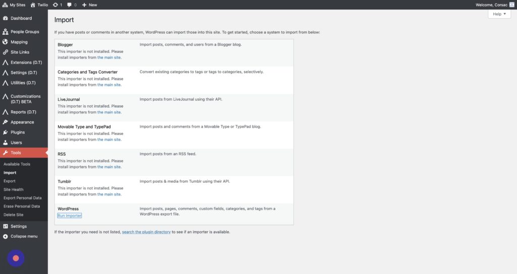You’ll need to install the WordPress Import Tool if you haven’t already.