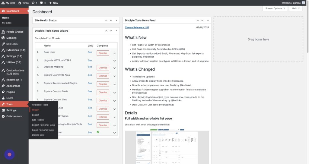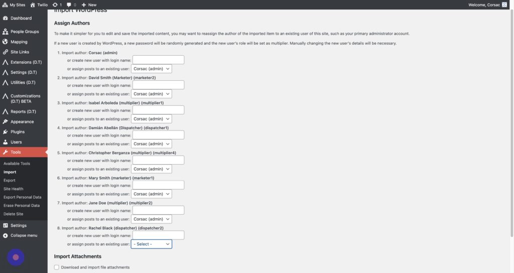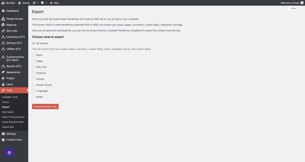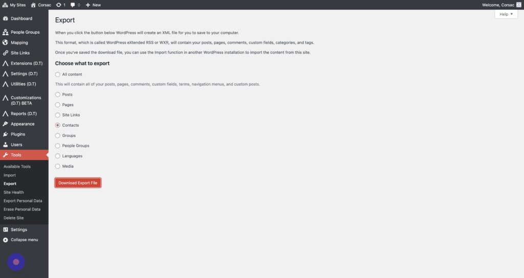Here is how to export contacts form one Disciple.Tools system and import them into another system via WP’s default export and import functionality.